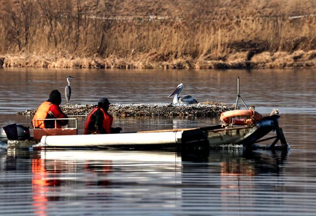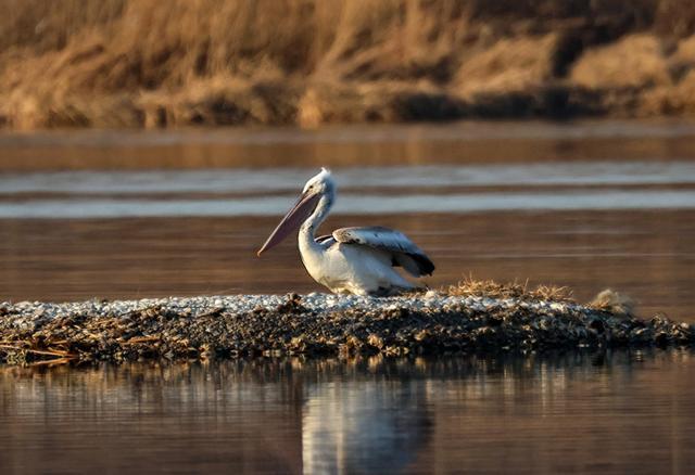不仅仅有鹮嘴鹬,在沙河水库,国家一级保护动物卷羽鹈鹕也前来觅食,它标志性的大嘴巴,天生就是捕鱼高手,觅食时张嘴,以囊袋捞入大量水,滤去水后吞食其中的鱼。位于北京正北方的沙河水库,处于东西两条候鸟迁徙通道的“黄金交叉点”,这里得天独厚的生态环境为卷羽鹈鹕提供了优良的栖息环境。