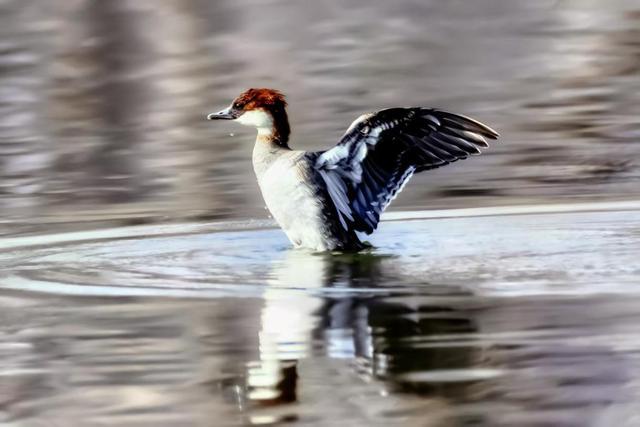 在白浮泉公园南园,有着“鸟中熊猫”美誉的国家二级保护动物熊猫鸭到此打卡。它的学名叫斑头秋沙鸭,又名白秋沙鸭,因其雄鸟眼周醒目的黑色斑块酷似熊猫眼,被爱称为“熊猫鸭”。这类迁徙性鸟类对栖息环境极为挑剔,尤其依赖水质优良、生态完整的淡水湖泊与河流,以鱼类、甲壳类等为食。此次现身白浮泉公园,印证了园区优良的生态环境,水质与植被条件均能满足珍稀物种的栖息需求。