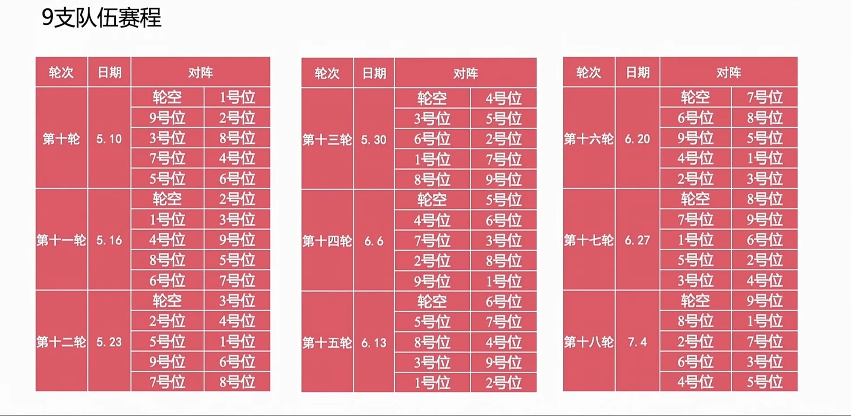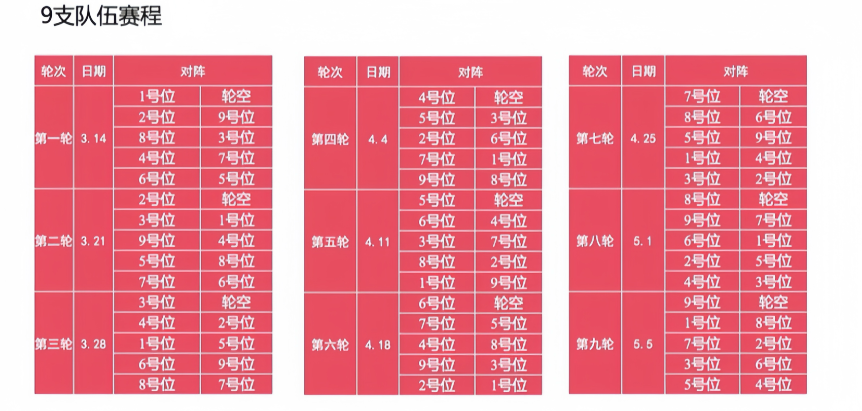 各支队伍竞赛序号