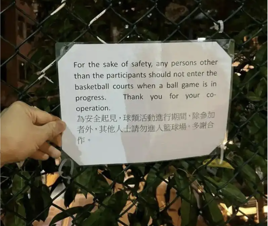 回溯过往,热度背后曾藏着不少矛盾。大量游客聚集在球场边缘,不仅遮挡运动市民的视线,有时还会因过于靠近场地干扰运动的市民。最严重时,篮球场甚至一度贴出“禁入提示”。