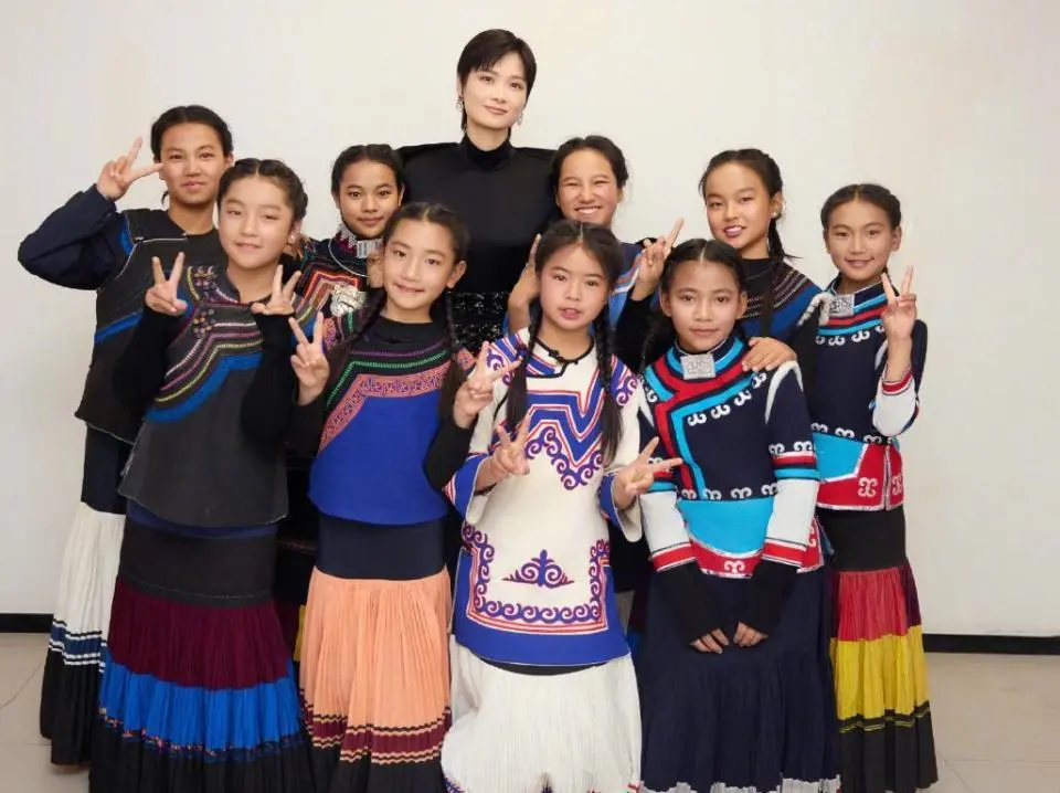 她在后台遇到了喜德县的小朋友,他们在一起聊了许多有意思的故事,她看起来没有一点大明星的架子。