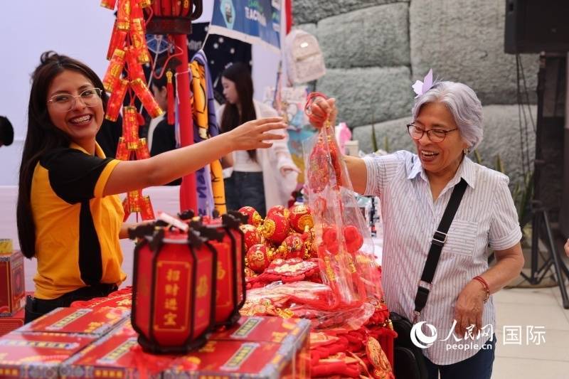 春节庙会活动持续全天,由旅秘华人社团、中资企业和孔子学院等布置的近30个展位主题涵盖中国美食、文化产品以及科技产品等,吸引众多秘鲁民众现场体验。秘鲁文化部还在其建筑外墙的大屏幕上滚动播放中国春节相关宣传视频,吸引民众驻足观看。