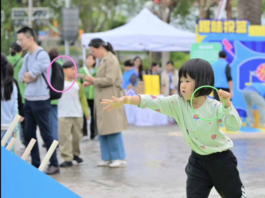 嘉年华现场,“一起拍一拍”“飞盘大作战”“环保卫士套圈圈”等亲子运动项目,设计科学专业,兼顾趣味性与锻炼效果,让孩子们在玩乐中提升对体育运动的热爱,增强体质、锤炼意志。